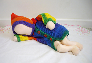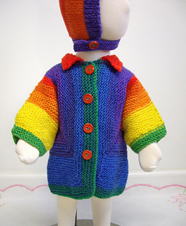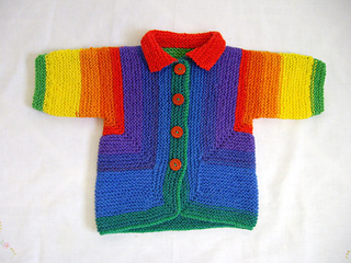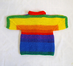 Had I realized it was made with all seven colors correctly, I might have cut off the first part and started with the red in order to knit them in order.