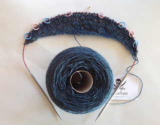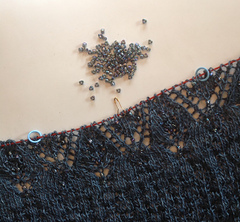 4/26/15 - Finished Chart 9 and took what seemed like forever with bindoff. I’m bad at the cast on method suggested for the picot bind off, so I did regular knit cast on 3, bind off 6. By some miracle, picots fell where they were supposed to!!