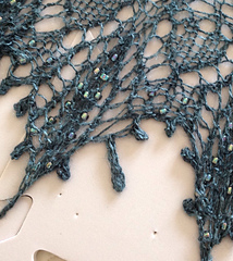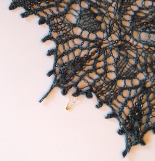Blocking was VERY interesting. As usual, I learned a couple things from this, especially: BUY MORE BLOCKING MATS IF I THINK I’M EVER GOING TO BLOCK AGAIN. One package of nine squares just did not do it!! And, I found an interesting little tendril - looks like a cast on 6, bind off 6 instead of cast on 3, bind off 6 I did while I was in my bind off trance - right in the middle of my bind off row!!! :( Now what the heck am I going to do to hide that?!?!?!?