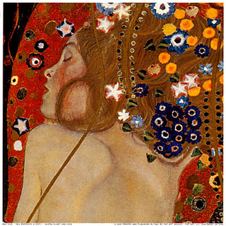 The pattern calls for 16 colors. I am reducing that, though still trying to decide by how much. I’ve reduced it to 14 and may still eliminate more. My inspiration is the work of symbolist painter Gustav Klimt. Best known for THE KISS, one tends to think of his work being full of metallic tones, especially gold and copper, but I have looked to his other works which feature a fascinating palette and fewer metallics.