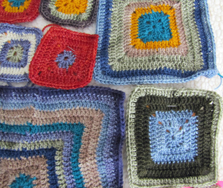 Working over the yarn ends when adding new colors has saved a vast amount of time but each square still has a modest amount of finishing work before it can be sewn into the blanket.