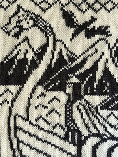 Lots of very long floats (10-15-20 sts) so if you are not a big fan if catching floats I would absolutely recommend using the jaquard ladder back technique, that’s what I did.