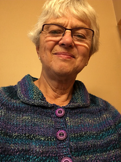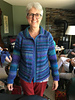Sandy modelling jacket at Knitters Meeting