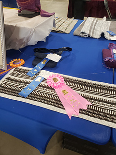 Received a first place ribbon and a Best in Section rosette in a handknit, handspun category at the 2025 Chilliwack Fair.