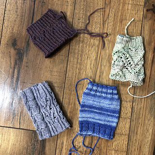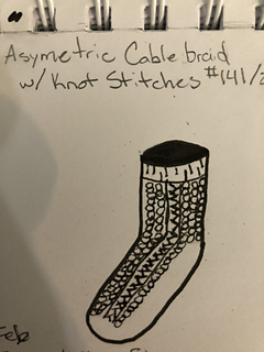 I’ve drawn up rough sketches of the patterns that I’ll be creating and have 5 of the corresponding swatches listed below. Each swatch has given me all the information I need to completely write the full sock pattern using that stitch pattern.