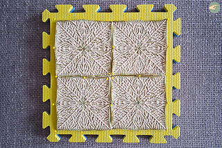 → Finally, I ironed both sides of the piece using a damp cloth and my Prym mini iron. This worked very well to flatten the corners, considering it was the first time I had used this method, especially on crochet!