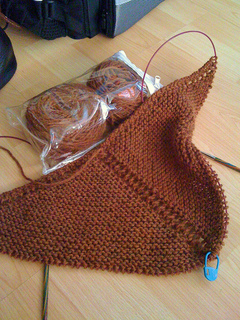 08/16/10 — Ugh. After knitting happily along for 2 weeks, I made a mistake. Unknitting some rows made me sad so I spent some time away from the shawl for two weeks (while working on another project). But I’m back! I’m on track now and there will be no more mistakes!