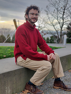 Test Knit for Sassafras Pullover by Andrea Gaughan. Size D, Fit II (more masculine fit), to fit both me and my partner.