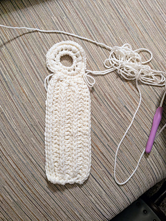 Finished through the seam and weaving yarn around the bottom to close once it’s stuffed. If I have stuffing upstairs, I don’t know what I’ve done with it. I suspect I used the last of it on my last project. Just have to remember to bring some up and also find the cinnamon sticks and get some covered wire.