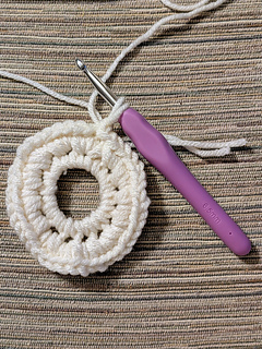 I took more photos of it in progress because it’s such a cool and clever pattern the way it starts as a MR and then switches to rows.