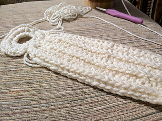 Second one made with 2 strands of worsted weight and a 6.5mm hook to get an extra large size.