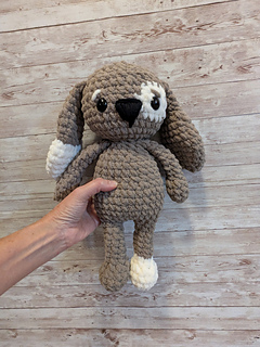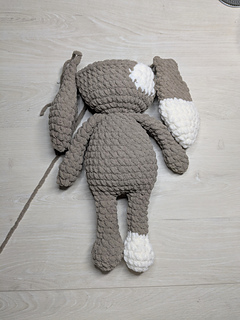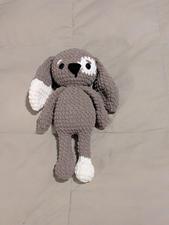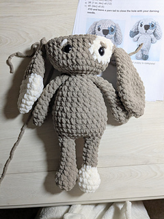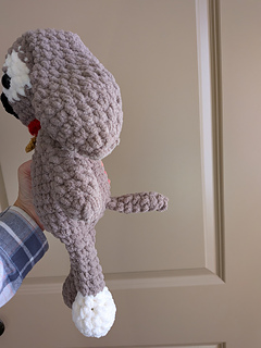 I added a tail and a “gold” tag to the front of the collar, all in an effort to make it look like a dog instead of a rabbit. lol