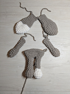 I was able to get one arm finished and another one started after dropping pkgs off at the post office on my lunch break. I don’t have stuffing with me, and I think I might like the arm paws unstuffed. We’ll see. I didn’t permanently fasten off yet.