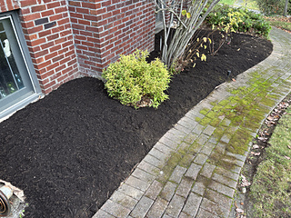 Wonky downspout relocated from hedge to proper place on garage wall.