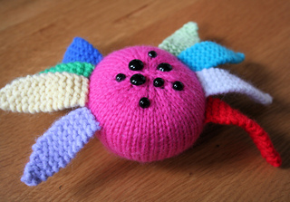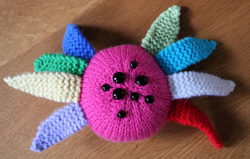 This version of the basic squeaky spider design was knitted with hairy tarantulas in mind - no slip stitch at the beginning of each leg row allowing the natural shagginess of the garter stitch to come through.