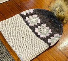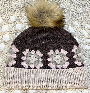 I don’t like crocheted crowns due to how the decreases look, so went with six sets of k2tog spiral decreases that aligned with the crochet squares.