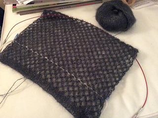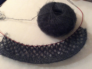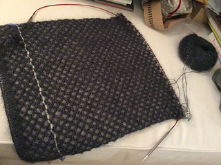 For the other end of the main piece, in order to get the bo to match the co (using cable co), I’m doing it in 2 pieces and grafting the garter stitch ends.