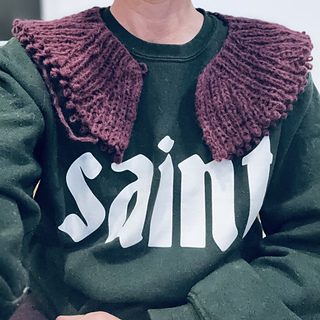 Finished the body. Knit to 12” then switched to us 8 and knit 2 more inches in half fisherman’s rib instead of 1x1. Did tubular bind off