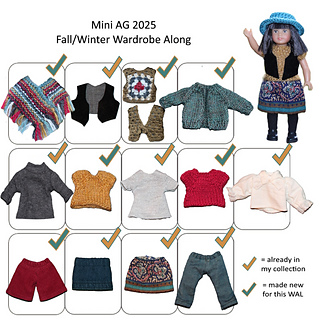 We will be putting together a capsule wardrobe for the doll of our choice. I’m suggesting between six to thirteen garments. This can be mix and match or not. You might want to add accessories like hats and scarves too. Just like most of us IRL feel free to add to garments already in your doll’s possession to fill out your wardrobe. Let’s aim for at least half newly made things. Any craft that results in a garment or accessory works.