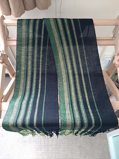 Went for King Cole Luxury Merino DK - it’s super soft, but unfortunately very elastic! It wasn’t easy to weave, and it makes the scarf delicate. Had a moment of panic after wet finishing because I accidentally ‘dented’ the scarf because I let it hang off my thumb a bit too long as I was spreading it out for drying, but was able to even it out with a needle. It’s super drapey though and does feel luxurious around the neck.