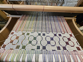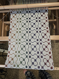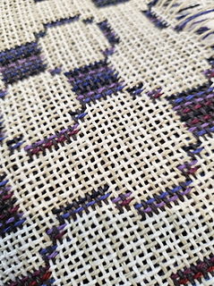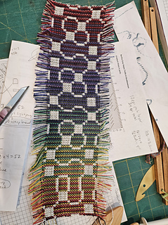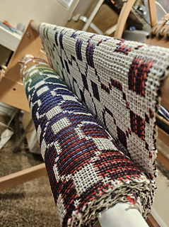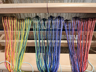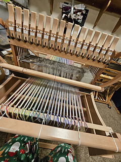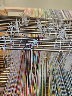 Threaded 1 A section as D by accident so I had to pull out 16 threads and make temporary heddles to hold them.
