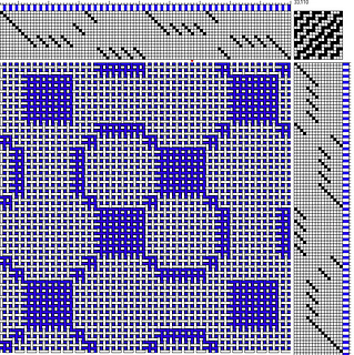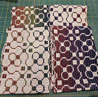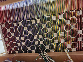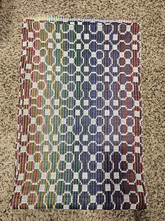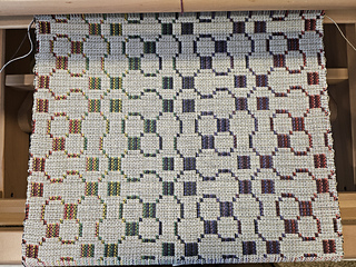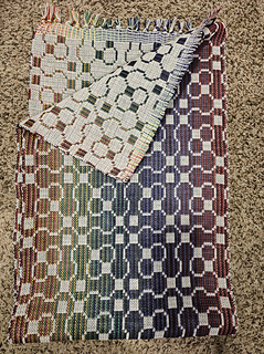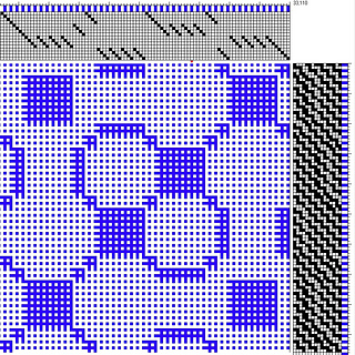 I LOVE Bertha Gray Hayes’ trellis pattern, so much that I’ve made it several times! I’ve even experimented with making it summer and winter weave (Nov/Dec 2011), and have modified the pattern to be different for that weave. The only thing I didn’t like about summer and winter was the huge patches of plain weave, like big BORING blocks of it. I just love this pattern so much, but now it’s time to do it as doubleweave, mixed with a gradient warp to make those bigger patches of weave more interesting!