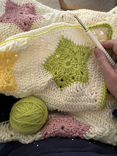 Took a couple of stars and one run through the squaring off rows to get the feel for it, and just completed one proper square. It’s a lot bigger than I thought - might do a 5 x 5 square with a fat border.
