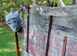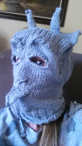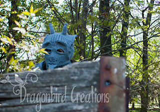 I will do two rows for the eyes on scrap yarn-and pick up two on either side (as in the horns) just to make the openings a bit wider-I like how they look as is, but I have to pry them open.