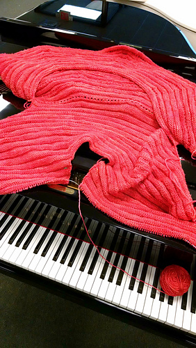 Jan 5. Swirl cowl delivered to yarn sponsor as an early thank you. Date of fundraiser moved forward a week to Jan 19. Yikes! Need to knit furiously to hope to have jacket completed in time. No pressure! (Yeah, right)