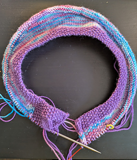 separated sleeves - note, last front panel was +1 st, k2tog to get correct count (42)