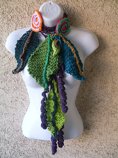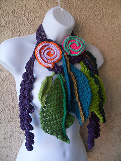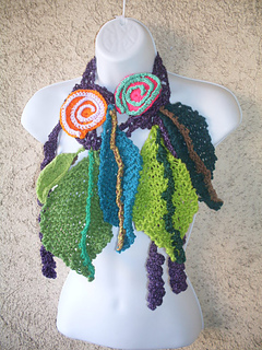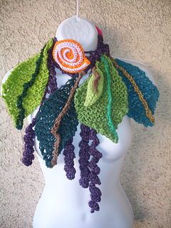 notebook > projects > Rainforest Freeform crochet and knit scarf with leaves, spirals and corkscrews - fantasy on purple green