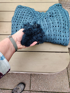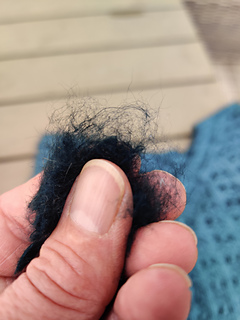 It lost nearly all of its possum hair. I think, as you can see on the last picture there might be 10% of the 30% of the possum hair left in the sweater.