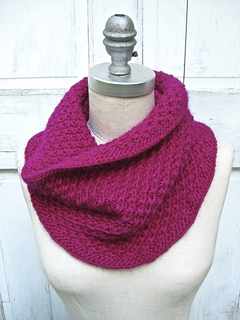 Just a simple, textural cowl in a bold color. It is mostly knit in Star stitch, with a couple rows of garter along the edges, and no shaping. This is another one of those simple pieces that gets a lot of wear. I love to dress it up with a brooch or wear it with another bold color, like cobalt blue, for a color-blocking effect.