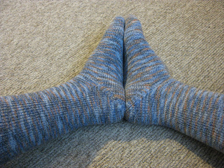 This is a basic toe-up sock with an afterthought heel. I’m using Wendy Johnson’s toe-up instructions and the Yarn Harlot’s afterthought heel directions (http://www.yarnharlot.ca/blog/archives/2007/12/28/an_afte...).