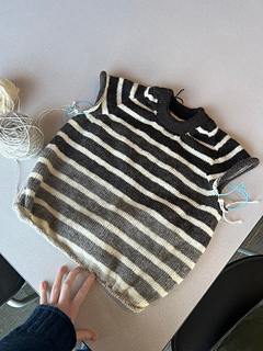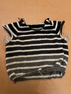 -i combined the last row of the “Then, for Sizes 4-10 Only” and the first row of the “Then, Continue for All Sizes”; in other words, i knit one row increasing on both the shoulders and the body