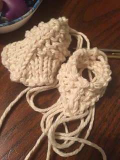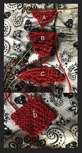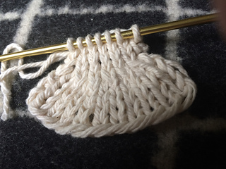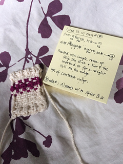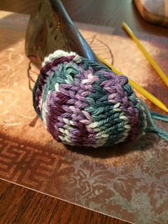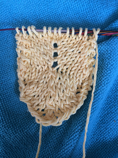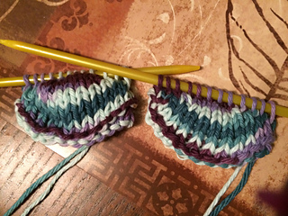 33-36 Experiment - left = GSR short rows, right = FLK. No noticeable diff. Grafted them together and made a heel. These were one-pass short rows.