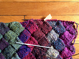 Using heavier yarn than written. Have gone down a needle size on entrelac to get closer to gauge. Still high, but that’s ok because I am a bit bigger than the measurements of the large. Advise starting this one with the sleeve panels because they are smaller and quicker to rip back if problems are encountered. Hop I have enough yarn, but I note that ribbing and cuffs are done last. Worst case - I get some plain black to finish.