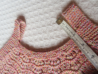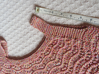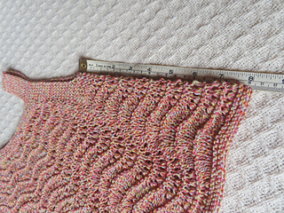 This is my second time knitting this cute summer top. I did this almost exactly like the first one, except that I followed directions for the smallest size in the pattern. (See my notes here.) This time I did all the charts, including A.2. However, I only did one repeat of all the charts in order to make this fit a soon-to-be 9-year-old girl who appears to be slightly small for her age.