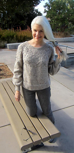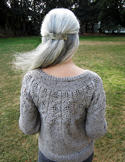This is my first test for Michele (MADuNaier on Ravelry). The design caught my eye right away with its lovely circular lace yoke and easy fit. It’s my favorite top-down construction, so there’s nothing not to like about this project. It was a very fun and easy project.