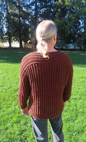 For the split lower ribbing, I didn’t do the decreasing on the sides as described in the pattern. Also, I did not make the ribbing in back longer. I felt these changes were more appropriate for a man’s version. I also made the lower ribbing longer than what’s recommended in the pattern because the sweater itself is considerably longer.