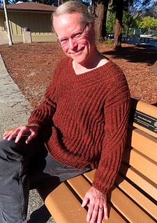 I love Aneta’s designs and her construction techniques. She thinks outside the box. This is a unisex design that I’m making for my nephew’s 21st birthday. My husband, Denny is modeling. The Cartridge Belt Rib Stitch does not make for the fastest knitting, but it’s a beautiful, fun stitch to do - so very rewarding for the extra effort. Although I used quite a heavy (aran weight) yarn, I think that I could easily make this again using a lighter weight, more drapey yarn. If knitting this for myself, I might also choose a pattern size larger than I normally use and perhaps go down a needle size depending on the yarn choice.