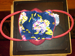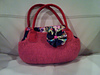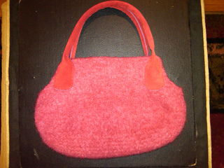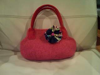 Learned a ton of new things with this project - and none of them knitting. How to soften wool, dyeing with Kool Aid, sewing a liner, making fabric flowers, covering a button in fabric, attaching purse handles.