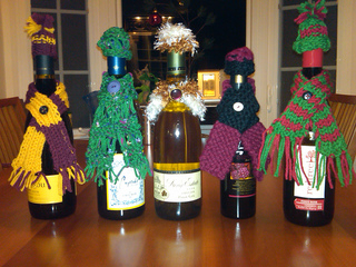 Fun with wine bottles. Will be used to dress up hostess gifts and wine gifts this holiday.