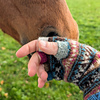 For the thumb, I only have 13 live sts instead of 15, because it fitted better with the placement between patterns to leave out the last increase rd. 15 would have been better, but it’s alright, not overly tight.