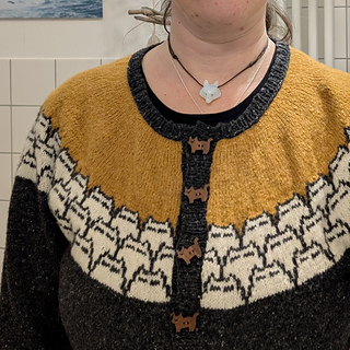 I had to switch to 40 cm needles because the increases in the second cat round were too much for my 35 cm needles. Yoke sweaters do have a lot of stitches… And to be able to see the colourwork, I don’t want to bind my knitting together below the needles.