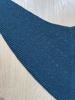 I’m blocking mine to have a rounder shape at the centre depth because I don’t love sharp angles, esp with shawls. I’ll also block the wings longer - and there’s height to do this with this shaping- to get more wrapping length without additional centre depth. I wouldn’t want this to be any deeper than it turned out pre-blocking, though I’m sure that everything will relax with blocking, esp given the properties of this yarn.