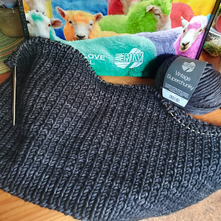nach einiger suche habe ich mich für ein schnelles projekt mit dicken nadeln entschieden. mir gefällt die vintage superchunky sehr gut, sie macht ein schönes gleichmäßiges maschenbild und auch ihre färbung (kein glattes schwarz!) hat mich überzeugt.