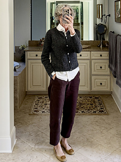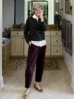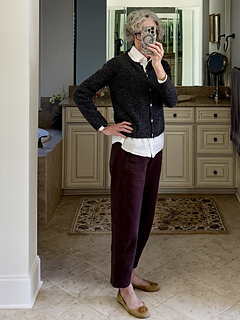 Oct 10 - sleeves seamed, ready to (re)knit the body ribbing.