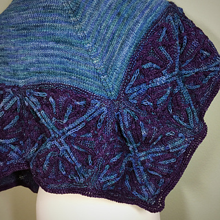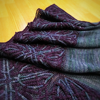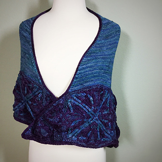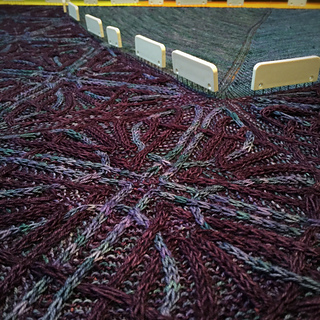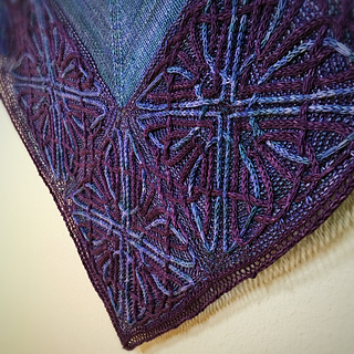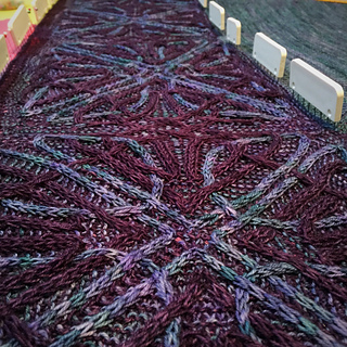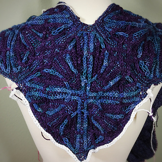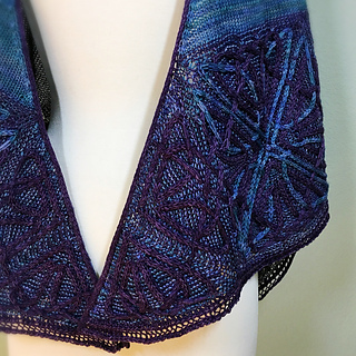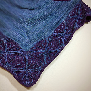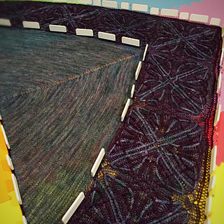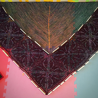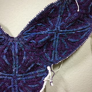 - Whew, picked up all 440 stitches along the lower portion of the shawl (picking up an extra stitch to close the gap between squares and working together with the live stitch to maintain stitch count) and placed marker between the point of the corner square