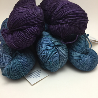 - Azules skeins were from the same dye lot but appreared to have different amounts of blue and green so I chose to alternate skeins throughout the body